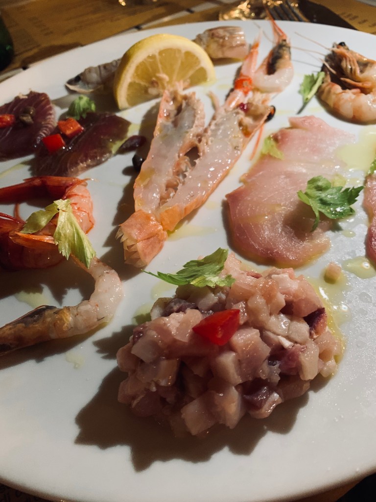The design is simple and maritime; as for the service, being honest I would rate it as a 4 out of 5. While I can’t complain about the service during the meal, I didn’t really appreciate the fact that it is not possible to book a table and you can sit down at you table only if all the people attending dinner are there.