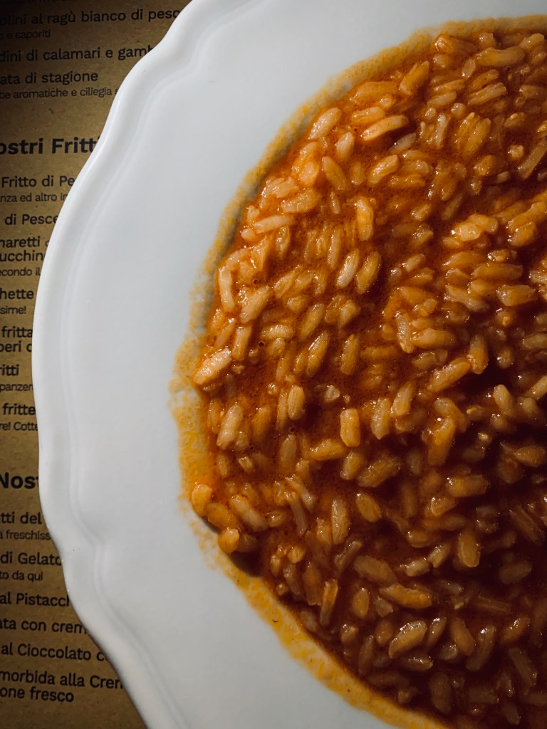 On top of the service, the food was delicious! I shared a plate of fried fish and another one of fried vegetables. Then, I ordered a first course, which is typical of the restaurant, meaning rice with fish sauce. Finally, I also shared meringue cake with chocolate chips, which reminded me of stracciatella ice cream.