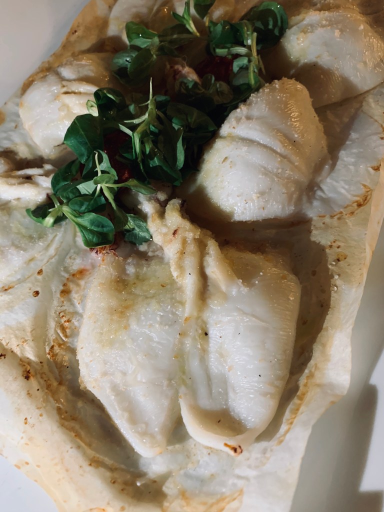 Finally, I tasted gratiné calamari, which were really good. In the pics, you can also have a look at a plate of raw fish and a cream with orange peel and caramel. I didn’t try these two personally, but those who were with me seemed super satisfied and pleased.